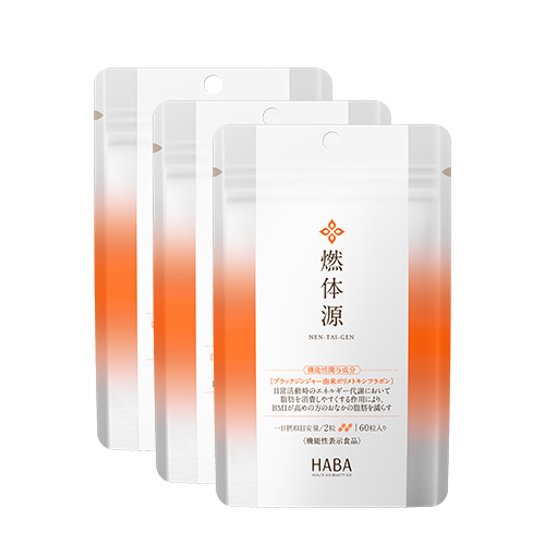 燃体源は、日常活動時のエネルギー代謝において脂肪を消費しやすくする作用により、BMIが高め(BMI 23~30未満)の方のおなか周りの脂肪を減らすブラックジンジャー由来ポリメトキシフラボンを配合した機能性表示食品。肥満気味の方のおなか周りに、1日2粒の健康習慣を。