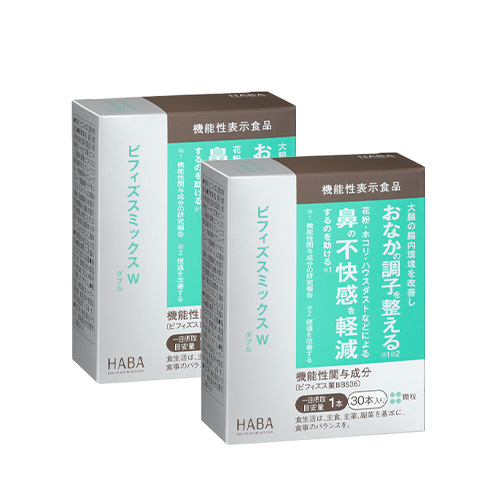 ビフィズスミックスW(ダブル)は、ビフィズス菌BB536をはじめ3種の乳酸菌をバランスよく配合。ビフィズス菌BB536はもともとヒトの腸内に存在し、酸に強いという特性があるので、生きたまま大腸に届き腸内環境を改善。さらに細胞バランス*1を整え鼻の不快感を軽減するというW(ダブル)の機能!健康な腸内環境で、すっきり軽やかな毎日に!