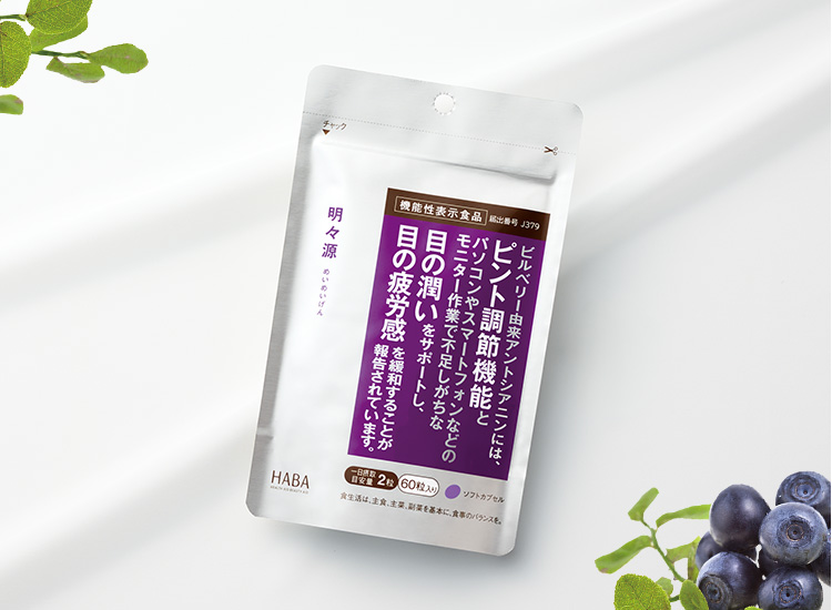 明々源は、3つの機能性関与成分・ビルベリー由来アントシアニン、