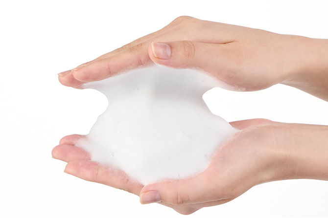 たっぷりの泡を転がすように洗うと、肌への摩擦の心配がありません。