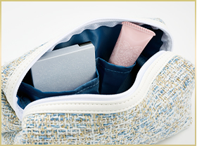 カラーアイテムや化粧小物を入れるのに便利な仕切りポケットつき!