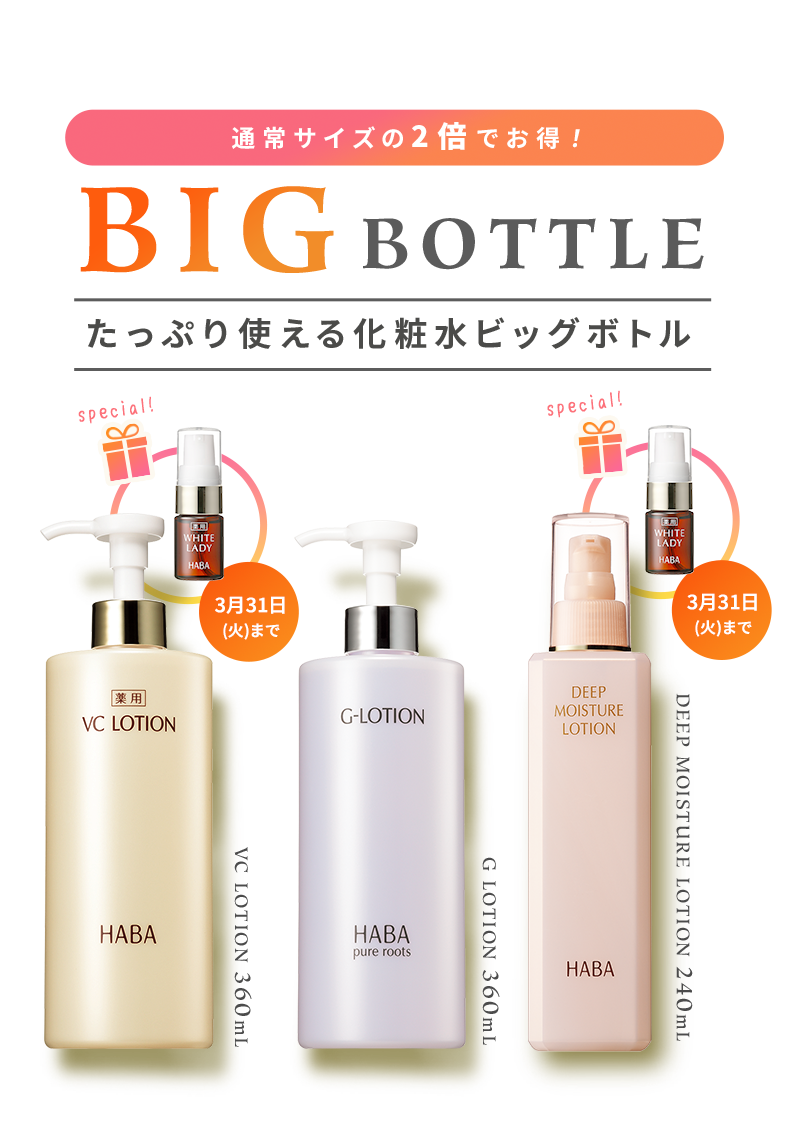 気候の変化などでゆらぐ肌には、たっぷりの化粧水で保湿ケアをすることが大切。お得なビッグボトルの化粧水で、惜しみなくうるおいを補給しましょう。