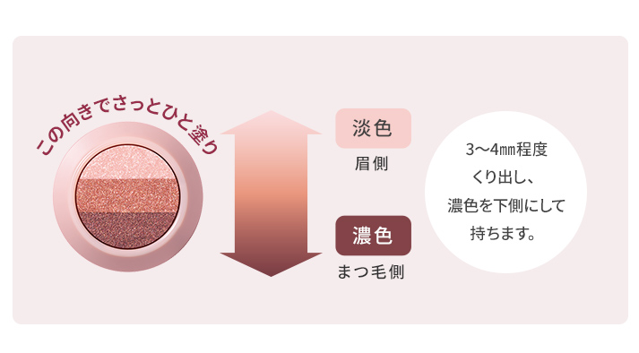 ブラウンの深みが大人の落ち着きを、上品なピンクが春らしい抜け感を演出。オイルの配合率を調整したことで、密着力がアップしてきれいな発色をキープ。瞳を際立たせる、魅力的で立体感のあるアイメイクに仕上がります。