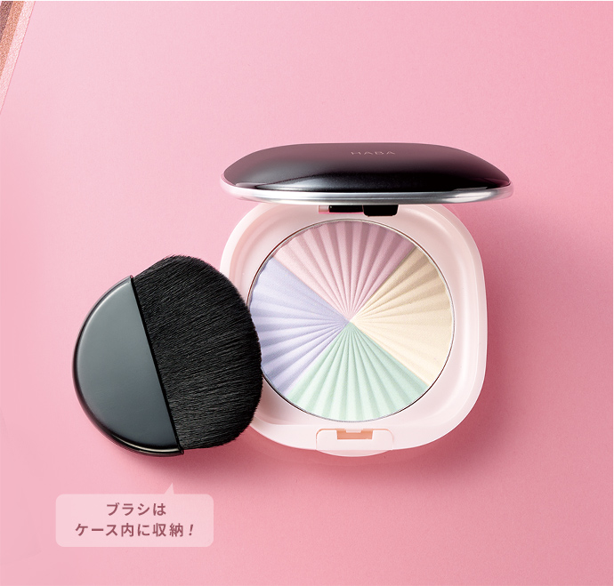 軽く円を描くように4色パウダーを専用ブラシにふくませ、さっとのせるだけ。光をコントロールして立体的な印象をもたらします。