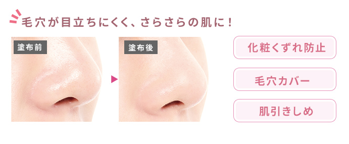 凹凸が気になる小鼻の毛穴になじませると、光で影を飛ばして毛穴レスに!美容液成分配合で、つるんとなめらかな美肌をしっかりキープします。